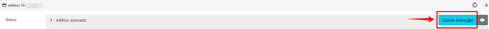 - Após a assinatura do documento, será necessário acessar: Cadastros » Contratos » Aditivos. Localize o aditivo em "Status 3 - Aditivo Assinado" e dê duplo clique para abrir nova tela. Você poderá clicar na ferramenta "Visualizar Relatório". Para finalizar o procedimento, clique em Liberar Execução.