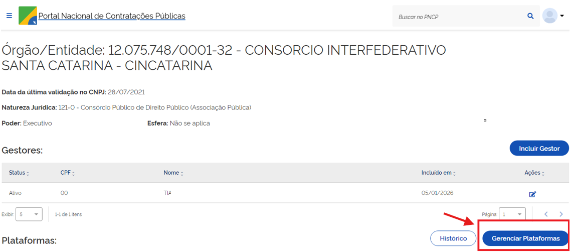 - Para autorizar/cadastrar plataformas, clique em "Gerenciar Plataformas".