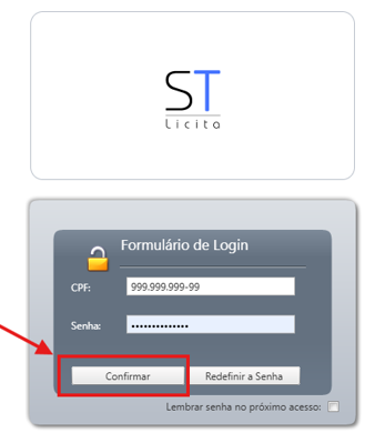 - Para efetuar Login, digite CPF e senha e clique em "Confirmar".