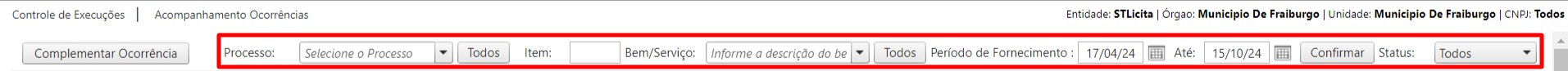 - Selecione no menu o item Controle de Execuções »"Acompanhamento Ocorrências" .