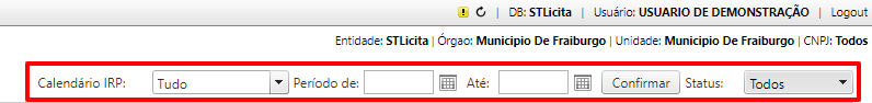 - Período "de/até": O período de dias entre a Data Inicial até a Data Final para exibição das IRP's. Caso sua IRP não seja