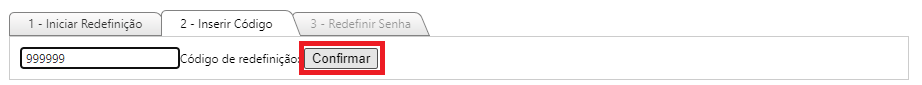 Verifique o recebimento do e-mail com o código de redefinição e clique em Confirmar.