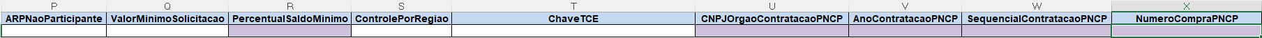 - ControlePorRegiao: "VERDADEIRO" para controlar Regiões nas solicitações de compra, caso contrário, aplicar "FALSO";