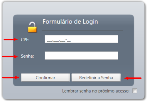 Após digitar o CPF e a Senha, o usuário deve clicar em Confirmar para acessar a área interna do sistema.