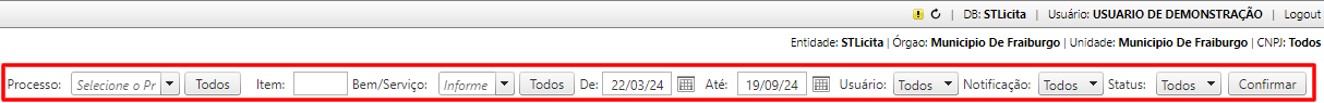 - Após selecionar todos os filtros desejados, clique em "Confirmar" para aplicar as ações e visualizar os resultados.