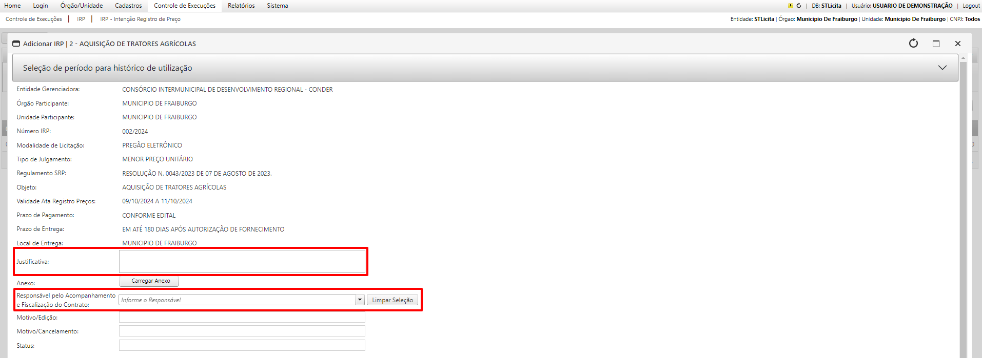 O Status será alterado para 2 - Manifestação IRP Pendente de Confirmação. Esse status permite a alteração da IRP.