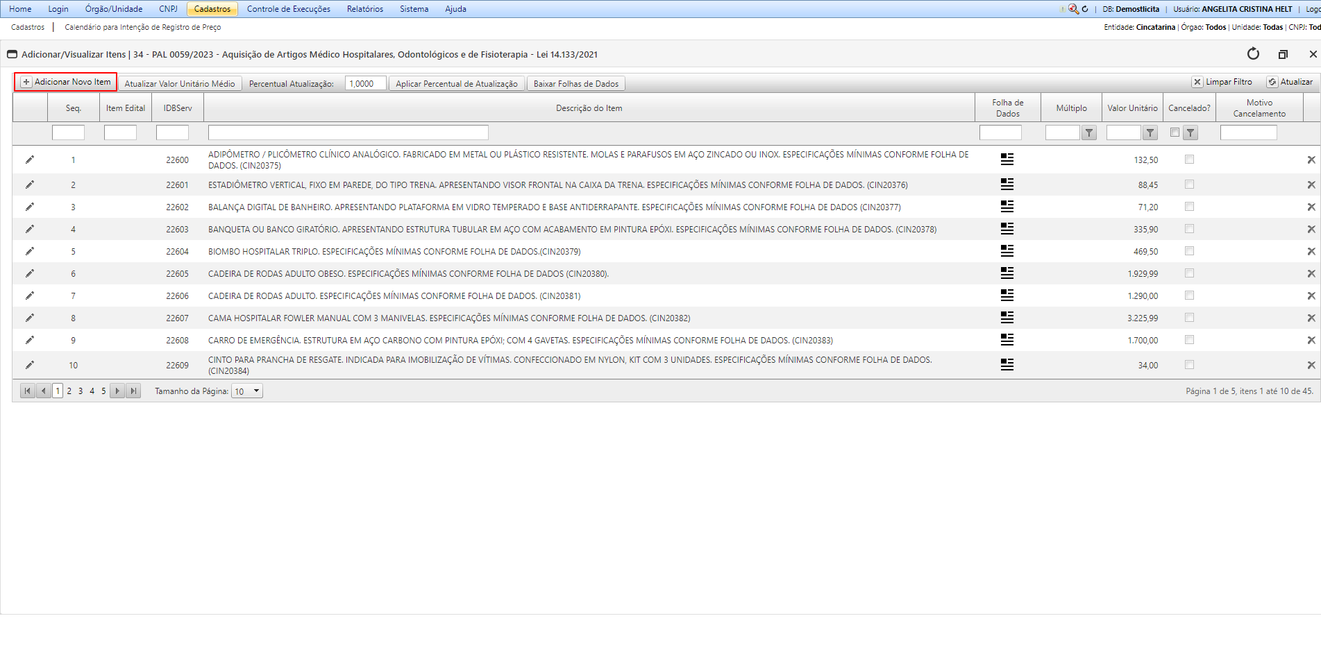 Pronto! Os itens foram adicionados ao Calendário Intenção de Registro de Preços (IRP)!