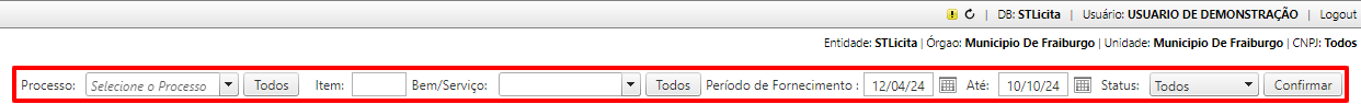 - Período de Fornecimento/Até: Período para exibição referente a Data da NF.
