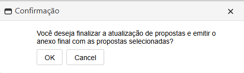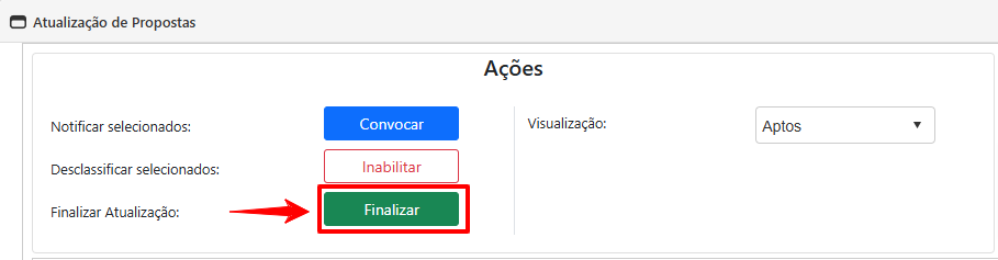 A Atualização de Propostas foi Finalizada. O Status foi alterado de Em Andamento - Convocados para Finalizada.