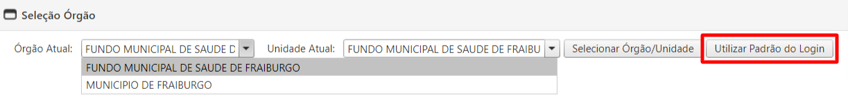 - Ao clicar no botão Utilizar Padrão do Login, o sistema irá assumir a última Unidade vinculada ao perfil do usuário.