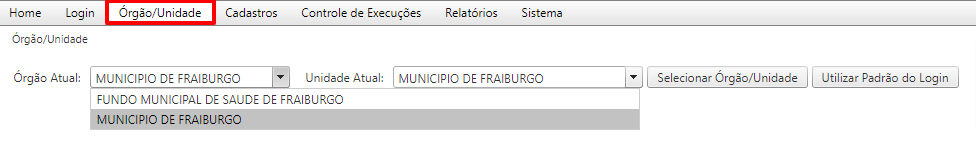 - Agora, todas as operações realizadas serão associadas ao Órgão e Unidade selecionada.