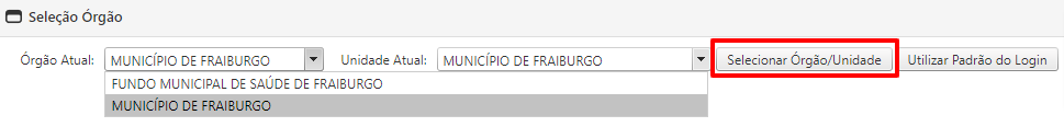 - Após selecionar o Órgão e a Unidade, você irá clicar em Selecionar Órgão/Unidade