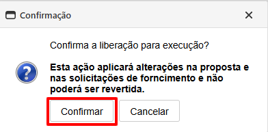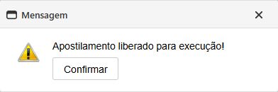 - Uma mensagem de texto aparecerá para confirmar a liberação para execução.