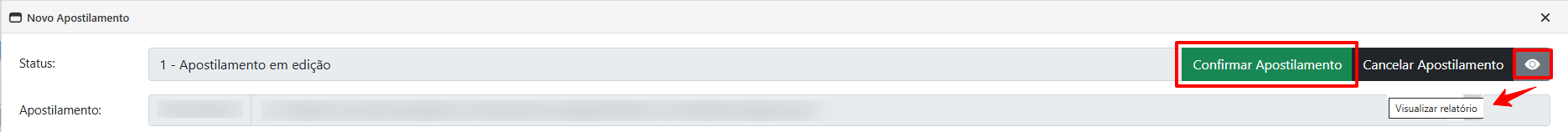 - Para finalizar, confira as informações (Você também poderá visualizar o documento) e clique em Confirmar Apostilamento.
