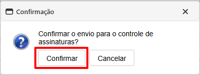 Uma mensagem de texto aparecerá para confirmação de envio ao controle de assinaturas.