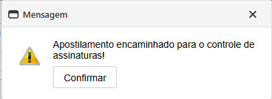 Pronto! O Apostilamento foi gerado e encaminhado ao Controle de Assinaturas!