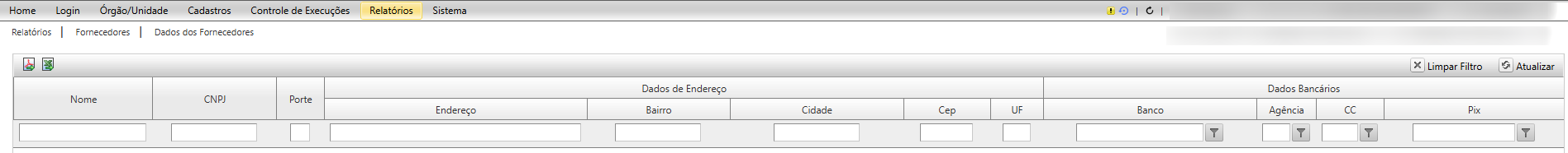 No menu, acesse Relatórios » Fornecedores » Dados dos Fornecedores.