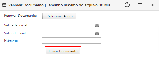 - Em seguida, será exibida uma tela onde ele pode anexar o documento necessário em formato PDF. Depois, é só preencher as informações pedidas e clicar em "Enviar Documento".